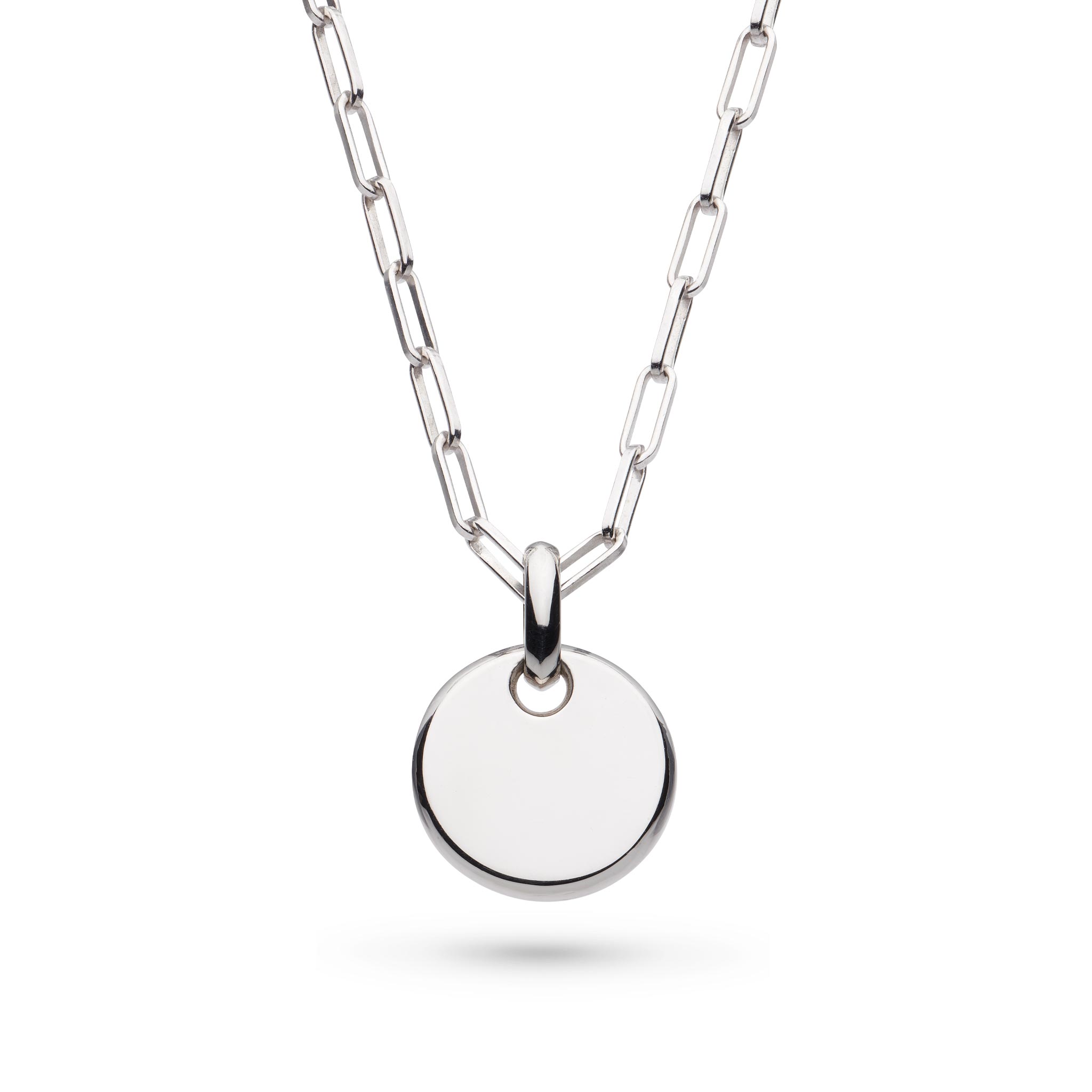 The CŽleste Eclipse Minuit Disc Necklace by Kit Heath, crafted from sterling silver, embodies the mystical allure of a celestial eclipse, offering a demure yet retro-inspired addition to both special occasions and everyday wear.