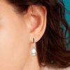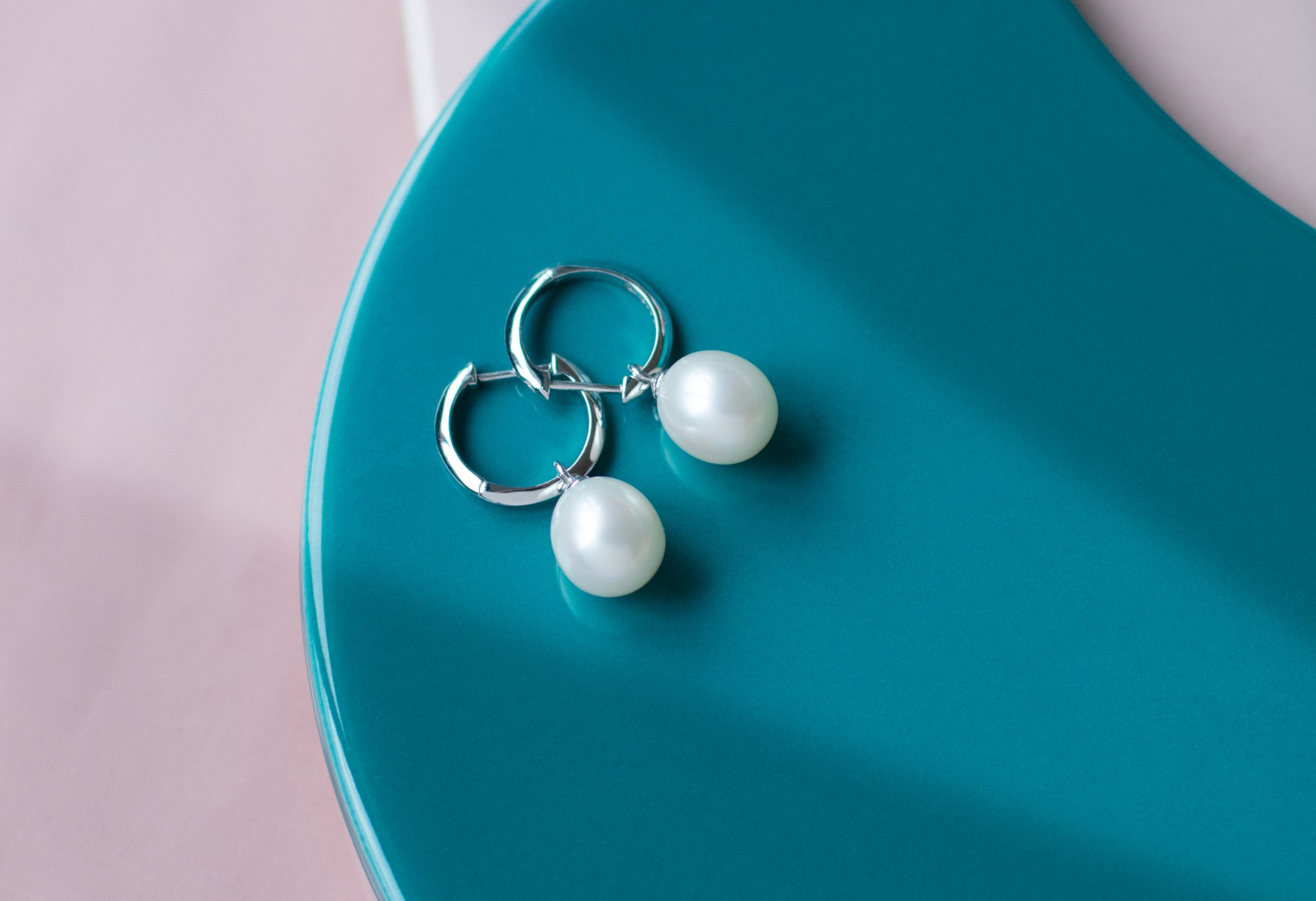 Feminine and demure, these on-trend silver hoop earrings feature organic in shape freshwater pearls, finished to luxurious contemporary perfection. Modest huge style earrings.