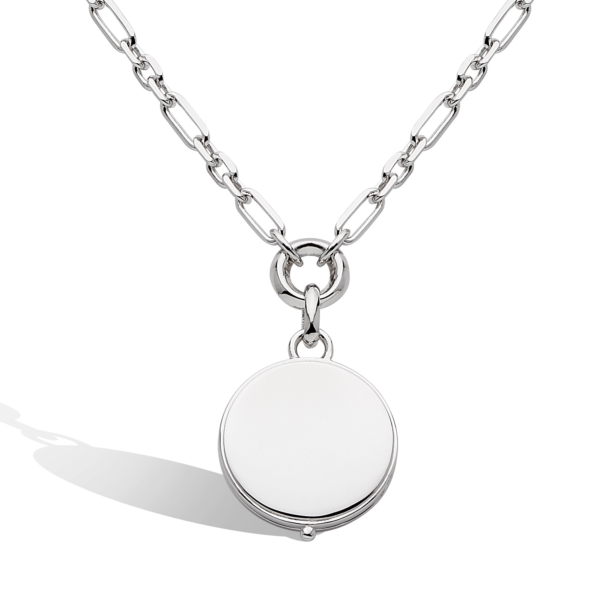 Experience the elegance of Kit Heath’s Revival Figaro Chain Link Locket necklace, crafted in lustrous sterling silver for a timeless touch of sophistication.