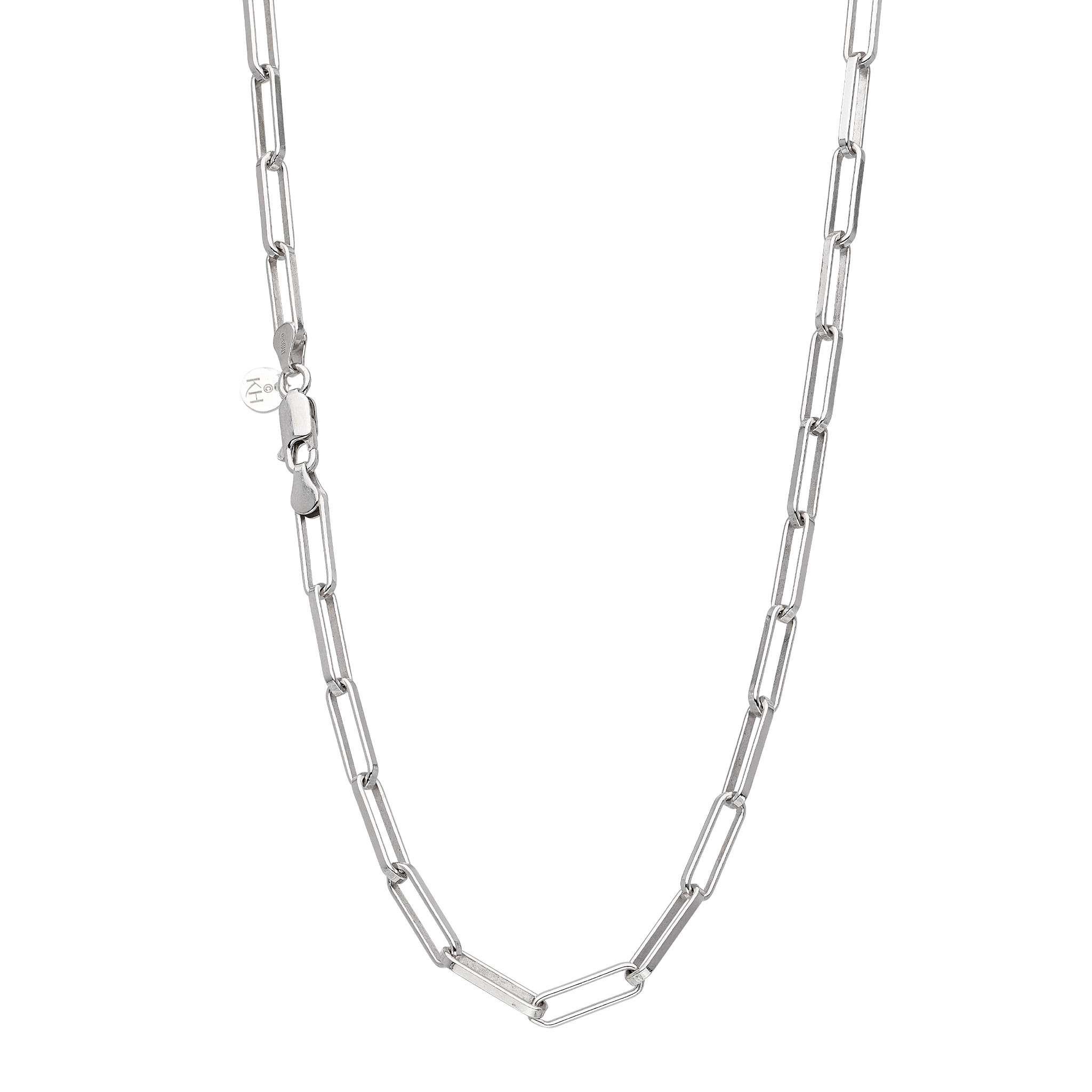 The Kit Heath Revival Paperclip Grande Chain Necklace, crafted from premium sterling silver with oversized links for a modern twist, elevates everyday and special occasion outfits with its elegant simplicity and contemporary style.