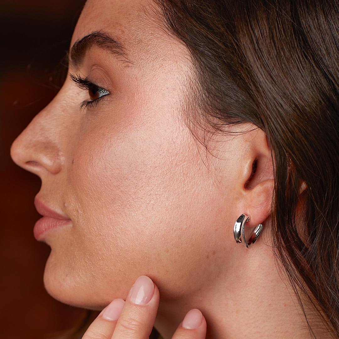 Bold, yet modest, the wide strand of silver undulates in an organic shape, making this pair a perfect embodiment of contemporary design.
